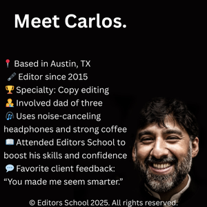 Carlos, a bilingual editor with a marketing background, started editing projects for indie authors part-time. When he charged by the hour, clients often tried to negotiate his time down.